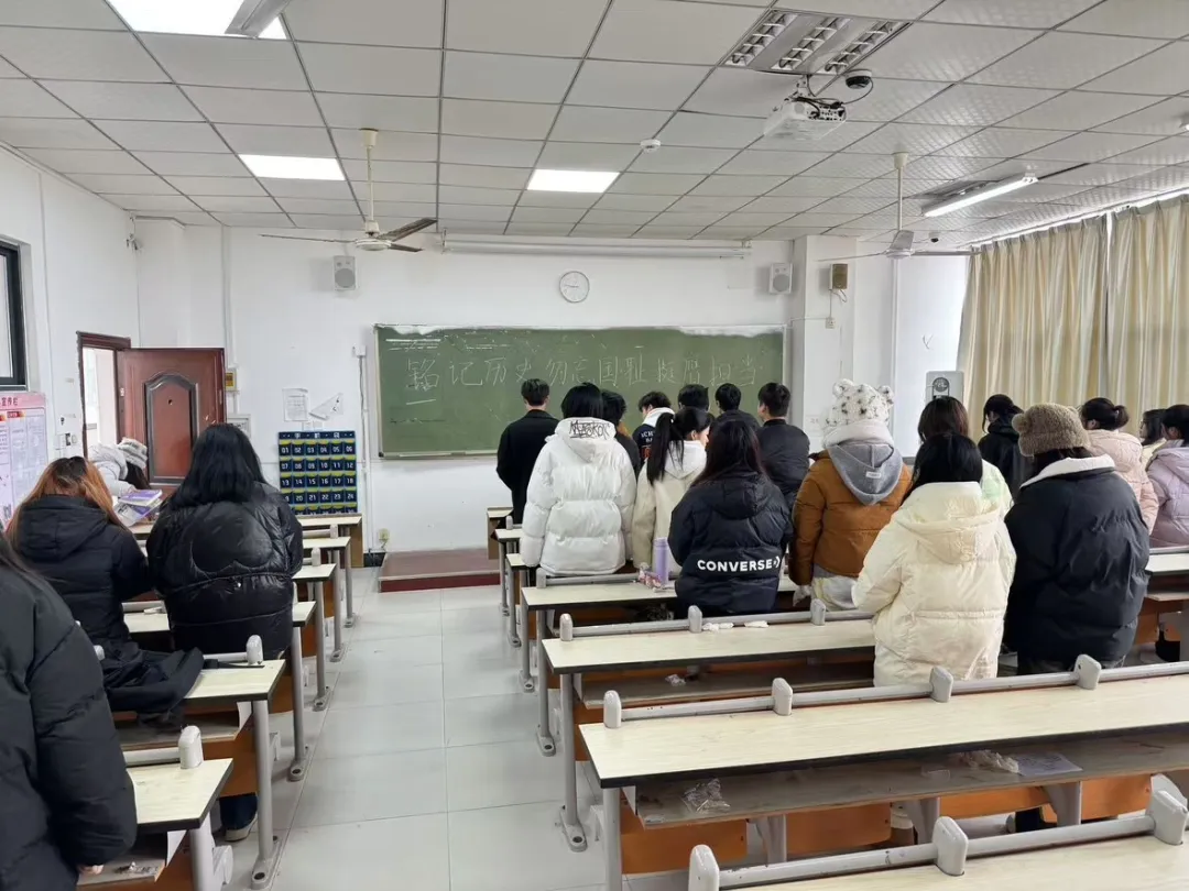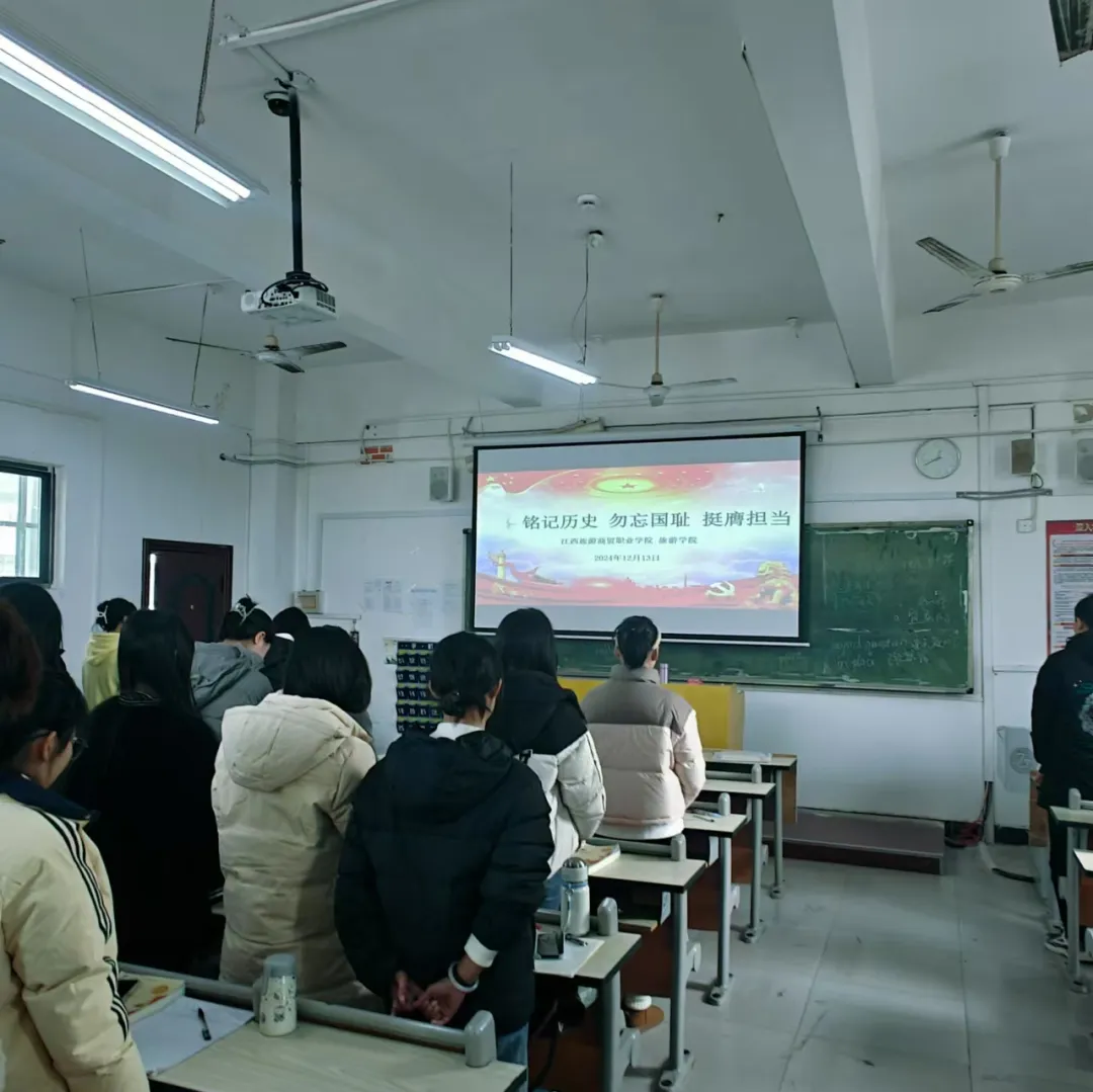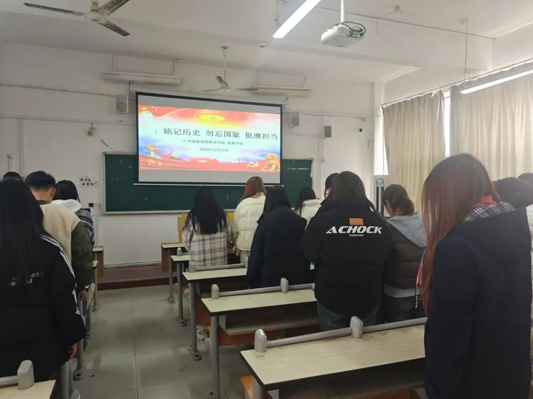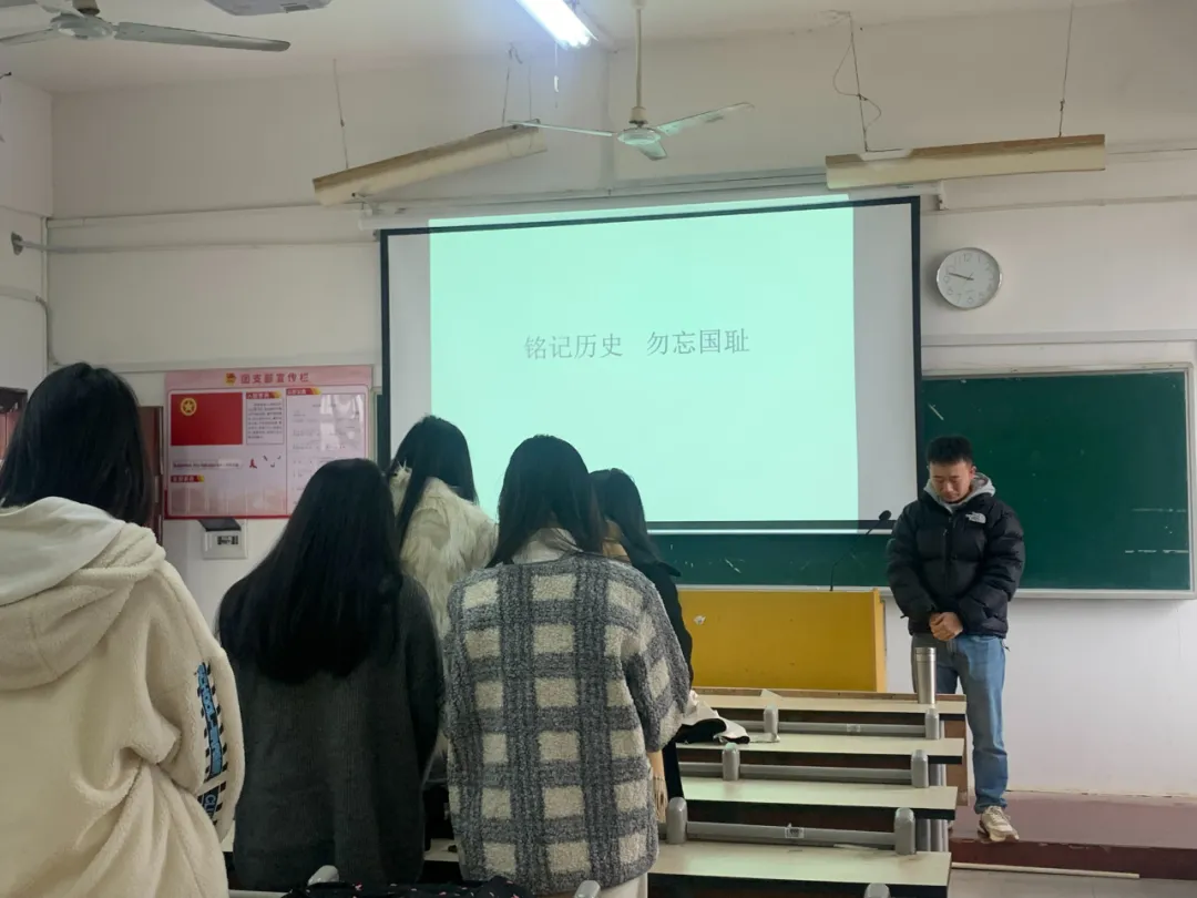 每一次对历史的回望,如同点亮一支民族精神的火炬。当刺耳的警报声再次响起,警醒华夏儿女牢记历史、珍爱和平,凝聚矢志复兴的磅礴力量。2024年12月13日,旅游学院各班级以集体默哀、红色故事讲述等方式开展“铭记历史 勿忘国耻 挺膺担当”主题团日活动。